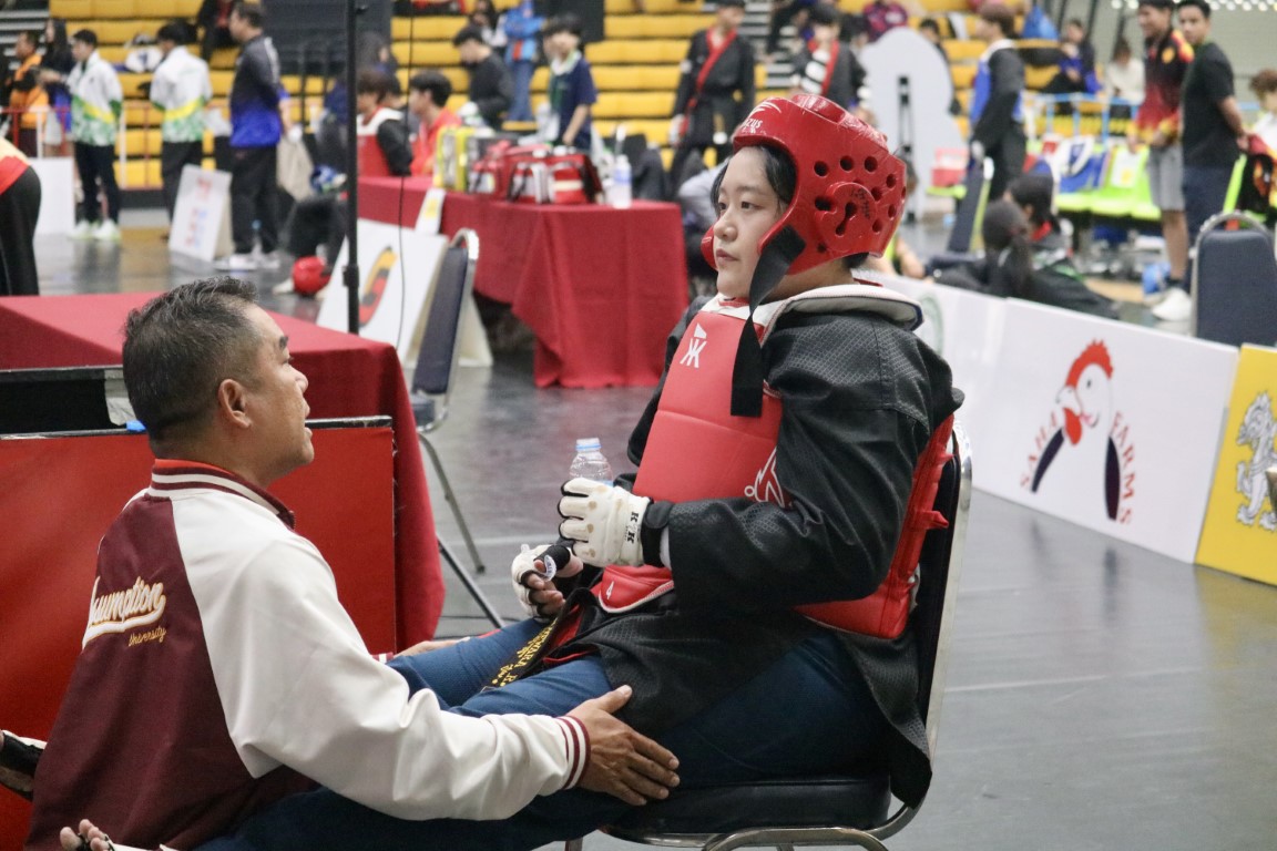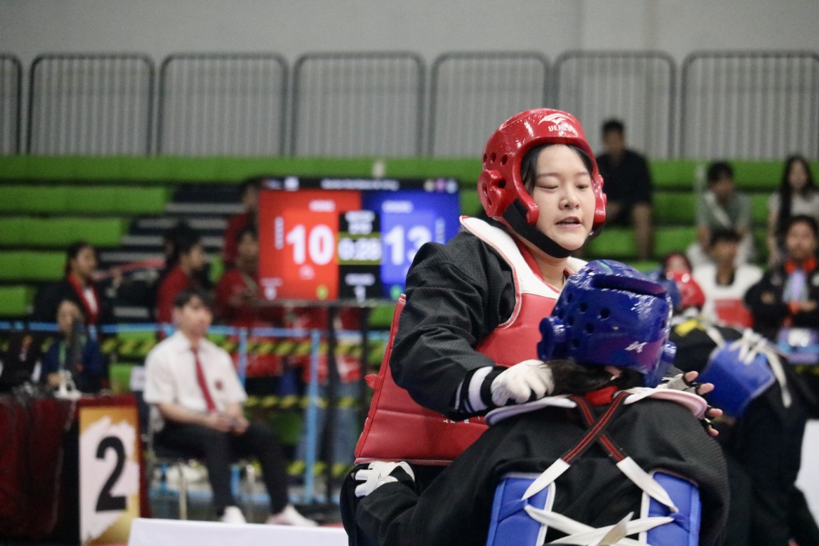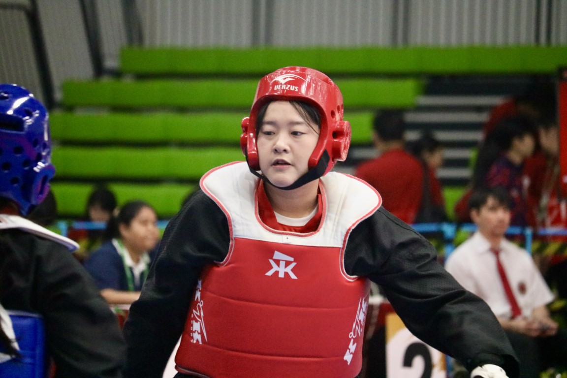 Ms. Nattawara Rattanachotikrakul , a fourth-year student from Martin De Tours School of Management and Economics, demonstrated outstanding strength and determination. Competing in an intense and highly pressurized bout every second, she continued to fight on despite sustaining an injury during the match—pushing forward without retreat.