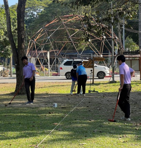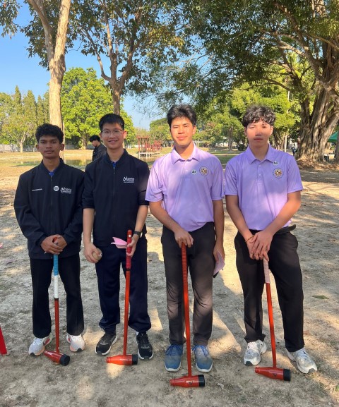 Mr. Komkrit Mitmasan, a fourth-year student, and Mr. Phumphat Thamnao, a first-year student from the Vincent Mary School of Engineering, Science and Technology, showcased their full potential and determination, successfully winning the bronze medal in the Men’s Doubles Match Play Woodball event.